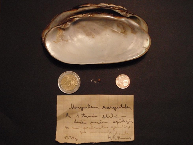 LU Muzeja krājumā, Reiņa Kampes ziemeļu upespērlenes čaulu kolekcijā, kas izveidota pagājušā gadsimta 30-tajos gados, glabājas vienpadsmit stikla stobriņi ar maziem perlamutra veidojumiem, kurus nosacīti varētu uzskatīt par ‘pērļu aizmetņiem’.