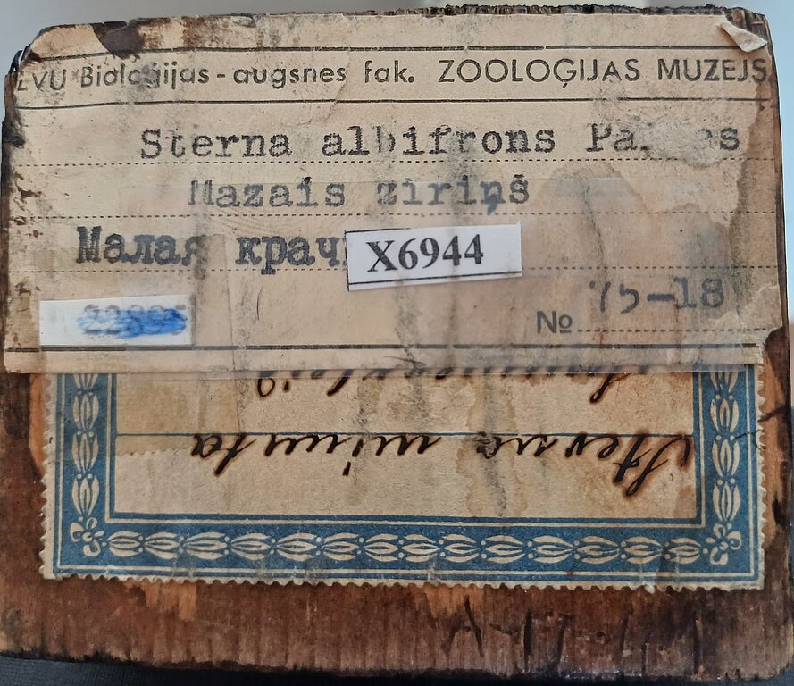 Viens no mazo zīriņu paraugiem ir mistērijā tīts – informācija par muzejā glabāto izbāzeni ir skopa, jo laika gaitā veidojies etiķešu uzslāņojums. Spriežot pēc izbāzeņa formas un novecojuma pazīmēm, kā arī senākās etiķetes, kura fragmentāri redzama uz pamatnes, domājams, tas varētu būt radīts aptuveni 19. gs. beigās vai 20. gs. sākumā. Vecākajai etiķetei pa virsu uzlīmēta cita etiķete laika periodā starp 1949. un 1953. gadu. Šo datējumu sniedz uzraksts uz etiķetes – LVU Bioloģijas - augsnes fak. ZOOLOĢIJAS MUZEJS. Plašu informāciju gan etiķete nesniedz – nosaukums latīņu, latviešu un krievu valodā, kā arī novecojuši inventāra numuri.
