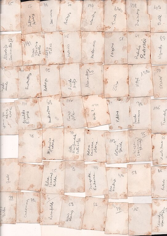 Hronoloģiski izdalāmi divi laika posmi, kad paraugi ievākti - 20. gs. sākums un 20. gs. 70. gadi. Pirmajā posmā paraugus ievāca barons Haralds Loudons un Jānis Zaikovs, savukārt 20. gs. 70. gados paraugus ievāca Juris Rūte un Agris un Māris Strazdi.