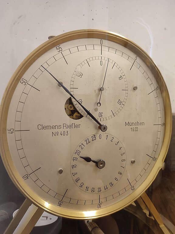 Galveno Riefler pulksteņu mehānismi bija ievietoti stikla kupolā, bet svārsti atradās vara cilindrā, līdz ar to šie pulksteņi bija pilnīgi hermētiski un tos neietekmēja atmosfēras spiediena maiņa. Pulksteņu svārsti bija izgatavoti no invara – speciāla dzelzs un niķeļa sakausējuma ar ļoti mazu termiskās izplešanās koeficientu. Tas bija svarīgi, jo no svārsta garuma ir atkarīgs tā svārstību periods. Šis bija galvenais iemesls, kāpēc pulksteņus vajadzēja novietot telpā, kur gaisa temperatūra mainītos pēc iespējas mazāk. Otrs iemesls bija apkārt esošās vibrācijas, abus šos nosacījumus nekādi nebija iespējams realizēt 402. telpā. Lai gaiss mazāk traucētu pulksteņu darbību, to daļēji izsūknēja no korpusa ar rokas sūkni. Mehāniski galveno pulksteņu gaitu varēja regulēt, palielinot vai samazinot gaisa spiedienu pulksteņa korpusā - ja ielaida vairāk gaisa, gaisa pretestība pieauga un pulksteņa gaita kļuva lēnāka. Taču ikdienā pulksteņu gaitu regulēja elektriski no attāluma, to vadības slēdži atradās 402. telpā. Darbojoties, pulksteņi deva elektriskus impulsus, kas pa vadiem nonāca 402. telpā un sinhronizēja sekundāros darba pulksteņus. [9]