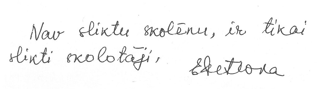 “Un tā 1910. gada 1. septembra rītā devos uz Rīgu. [..] Kad biju nokārtojies, iegāju arī RPI bibliotēkā un paņēmu uz māju pāris grāmatu. Tās nebija ķīmijas grāmatas, cik atceros, viena no tam bija par Puškinu un viņa laikmetu...”