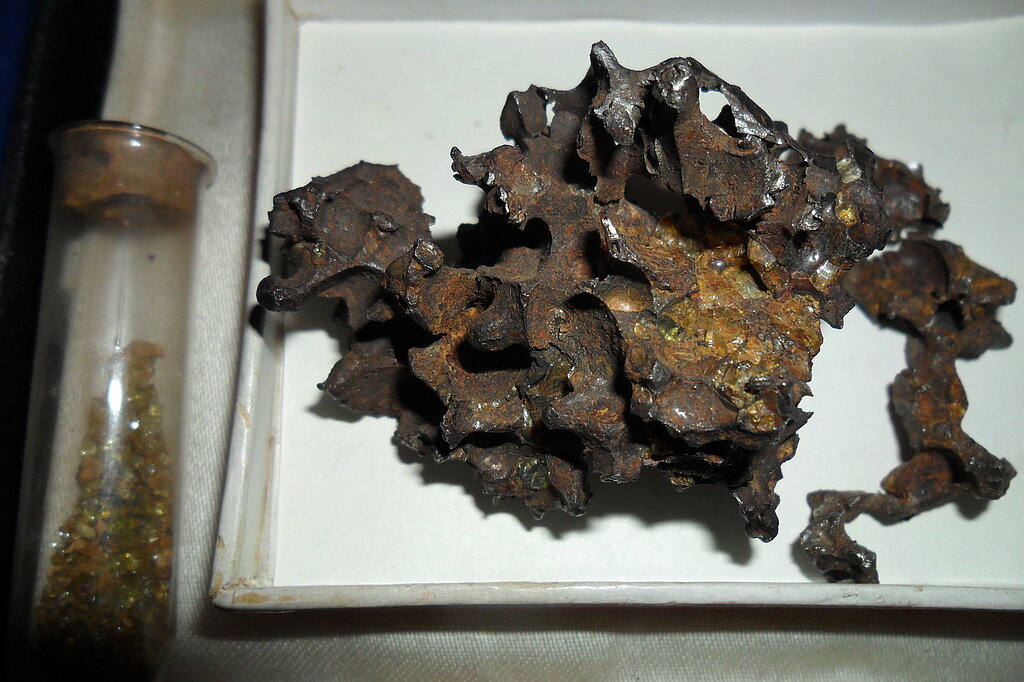 Pēc vietējo stāstījuma, šo dzelzs-akmens gabalu jau 1749. gadā blakus Medvedevo ciemam bija atradis vietējais kalējs Jakovs Medvedjevs, kurš to parādīja iežu speciālistam Johanam Mettiham (Johann Mettig). Abi ilgi pētīja šo dīvaino atradumu – tīra dzelzs, bet līdzīga sūklim, kur tukšumi aizpildīti ar cietiem, dzelteni caurspīdīgiem akmentiņiem. Šis dzelzs gabals atradās zemes virspusē, gandrīz vai kalna galā, kas nekādi neatbilda viņu priekSstatiem par dzelzs rūdas dzīslu atrašanās vietām un arī izskatā pilnībā atšķīrās no parastas dzelzs rūdas.