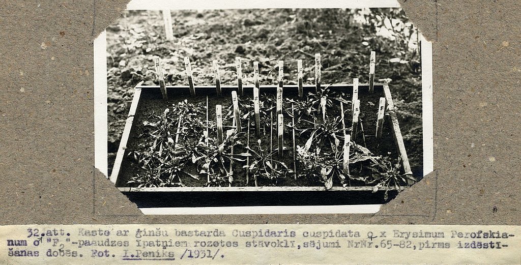 Pētījums tika veikts Latvijas Universitātes Botāniskajā dārzā. Studiju vajadzībām izdevās sēklu apmaiņas kārtā ar citiem botāniskajiem dārziem ievērojami palielināt LU Botāniskā dārza kultivēto krustziežu ģinšu un sugu skaitu. Apmaiņā piedalījās pāri par 245 botāniskajiem dārziem. Pārbaudot apmaiņas kārtā iegūtos krustziežus, izrādījās, ka no dažiem botāniskiem dārziem saņemts pat 30% sugu ar nepareizu nosaukumu. Bija arī tādi gadījumi, kad nepareizība nāca studijām par labu. Tā, piemēram, laimīgs ieguvums bija 1927. gadā no Leidenes botāniskā dārza ar nosaukumu Euclidium syriacum saņemtā Erucaria myagroides, kuru toreiz neizdevās laikā pasūtīt. Diemžēl, arī LU Botāniskajā dārzā sistēmas grupās ar nepareiziem nosaukumiem kultivēti un sēklu apmaiņas kārtā izplatīti pa citiem botāniskajiem dārziem vairāki augi, piemēram, Diplotaxis erucoides L. DO. ar nosaukumu Erucastrum rugosum L. Allioni.