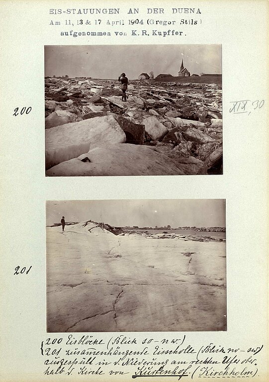 Laikapstākļi aprīlī Latvijā mēdz būt ļoti atšķirīgi. Ja šogad aprīlis ir atnācis jau bagātīgiem ziediem, tad 1904. un 1905. gadā tas atnāca ar milzīgiem ledus krāvumiem Daugavā, par ko liecina fotogrāfijas Latvijas Universitātes (LU) Muzeja Botānikas un mikoloģijas kolekciju K. R. Kupfera mantojuma apakškolekcijā.
