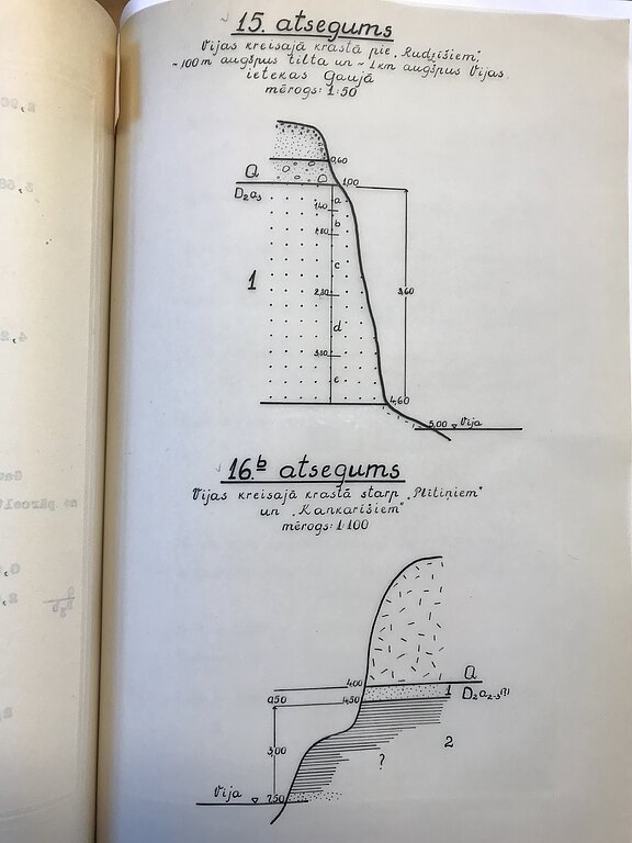 Savukārt, tikai pirms 85 gadiem Nikolajs Delle rakstā par devona nogulumiem Gaujas baseinā publicē 1935.gadā pilnveidoto stratigrāfisko iedalījumu, dod jaunus apzīmējumus slāņiem un norāda uz daudziem iežu atsegumiem Gaujas krastos, tai skaitā arī augšpus Valmierai. Diplomante atsaucas arī uz minētajā darbā ievietoto Gaujas baseina devona nogulumu pārskata karti. Lai gan ir pieejamas ziņas par šī reģiona iežiem, A. Dravniecei pēc literatūras avotu analīzes nākas konstatēt, ka petrogrāfiski un mineraloģiski pētījumi par tagadējo Gaujas un Amatas svītu nogulumiem Latvijā līdz 1950. gadam nemaz nav publicēti.