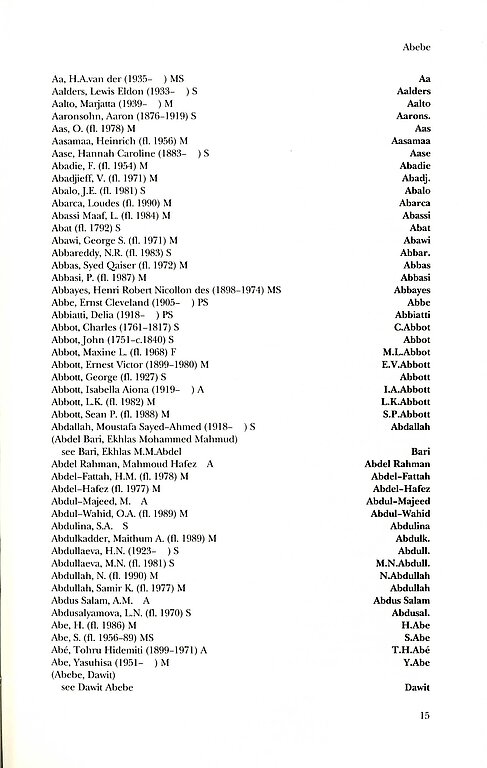 Ilga un cītīga darba rezultātā tika sastādīts saraksts ar 29 694 autoriem. Sarakstā norādīti autoru dzīves dati (ja tādus bija izdevies atrast), kas iegūti no visdažādākajiem avotiem. Katram no autoriem norādīts apzīmējums tam, kādu augu grupu šis zinātnieks pēta.